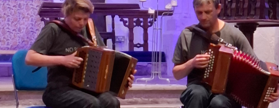 We set up the space in St Mary’s Nave for those who wanted to dance, and for folks who wanted to sit and listen. Dancers stepped quietly over the smooth stone floor, giving everyone the opportunity to hear every inflection, every exhilarating note. There were plenty of dance tunes, but Anne and Andy stuck to their “No Polkas” rule. Quite right too as this was serious music-making!